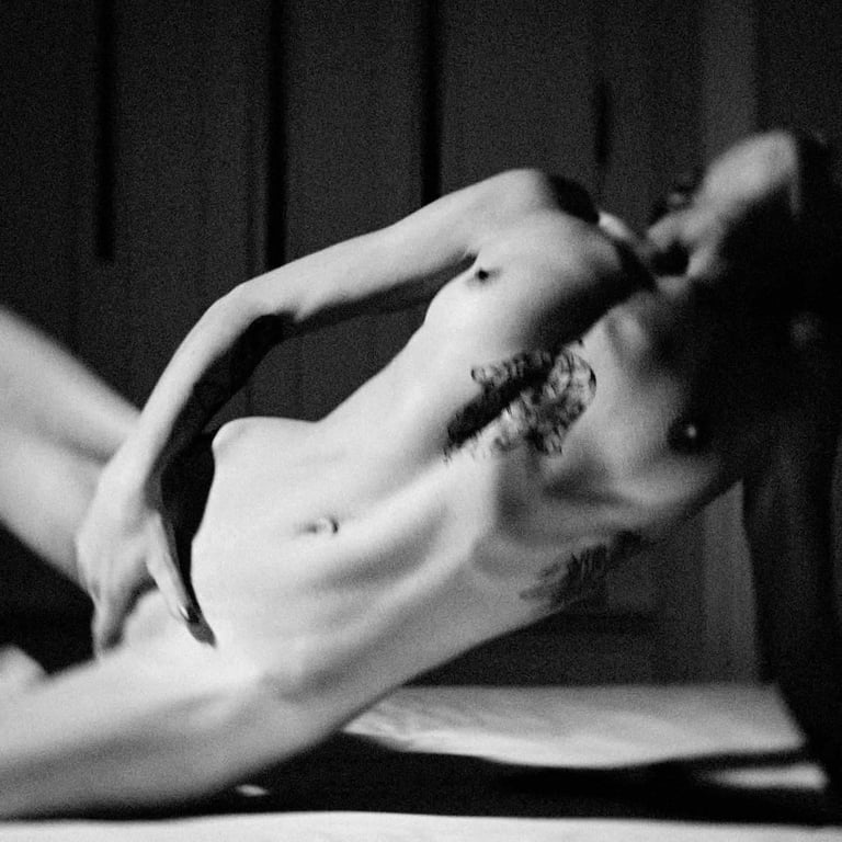She returned every night to reclaim what was stolen, the strap around her throat turned violation into choice, pain into power. Legs spread wide, fingers deep, she arched until the body screamed louder than the memories, betrayals once disguised as love, now carved into her nerves. Each orgasm ripped through like confession, but only fed the fracture deeper.